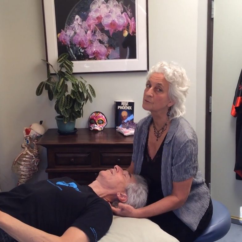 In this video you will see me creating an oscillation at the Atlanto-Occipital joint while asking the client to hold his breath out until the survival system panic button goes off. When the Survival System encounters a new threat to survival it abandons its previous stored strategy. Because I am oscillating the structure at the time and holding the joint in traction after the next inhale, and because the client is being supported in a neutral cervical/cranial alignment following the challenge there appears to be a long lasting change in the ‘set point’ of the body’s alarm system.