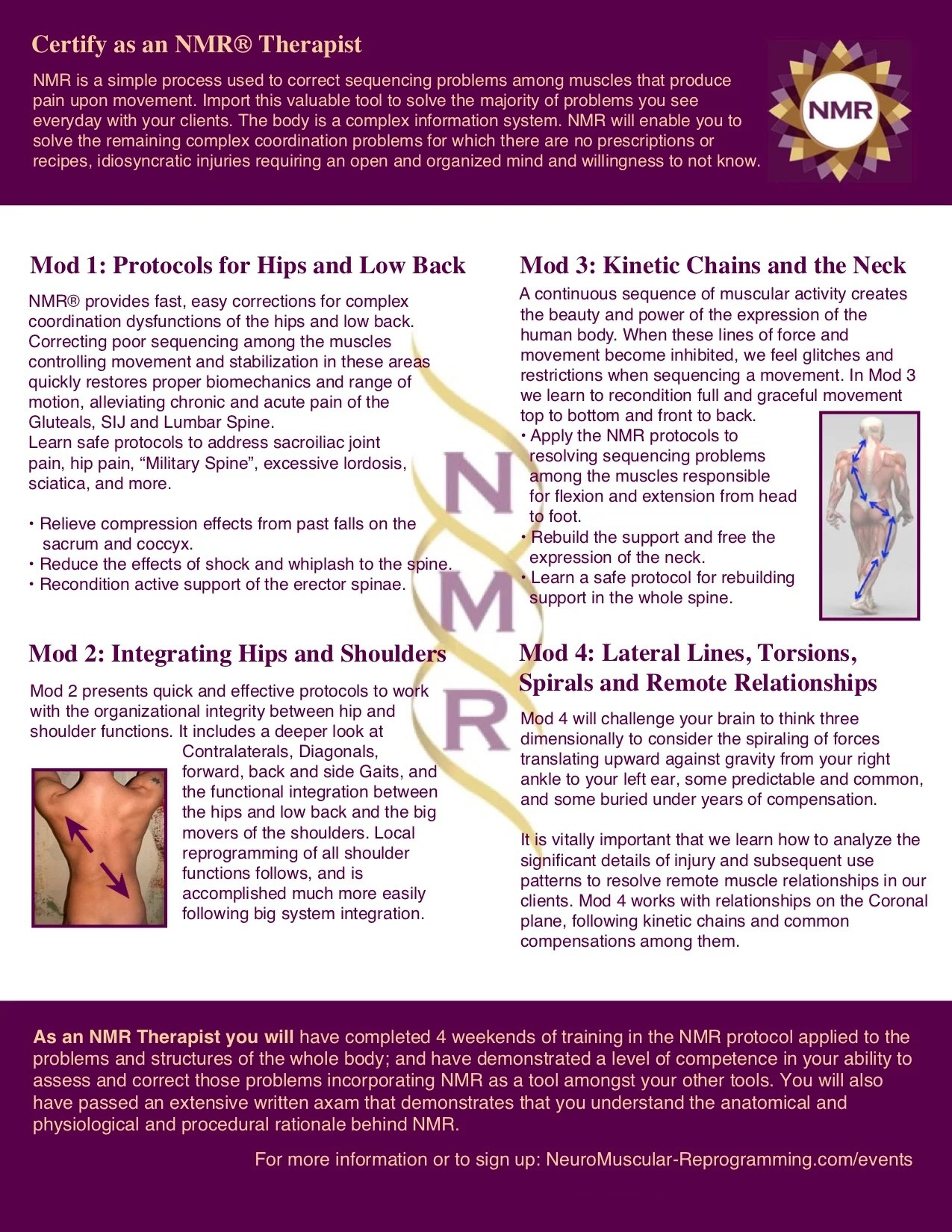 Completion of Advanced NMR expands your certification to Advanced NMR Therapist.